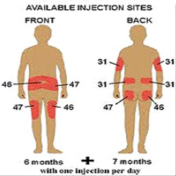 - Always rotate the sites for Insulin injection and put a mark after every injection. Never inject in an area to be exercised.