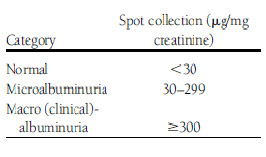 - All diabetic patients should be screened for microalbuminuria at the time of diagnosis of diabetes and if test is found negative then every year (in Type1 diabetes after 5 yrs of diagnosis & then yearly).
